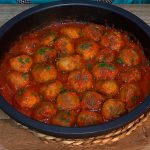Cuando las albóndigas ya están listas apagamos el fuego, espolvoreamos por encima con perejil picado y listas para disfrutar.