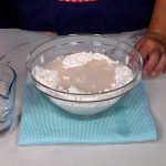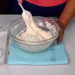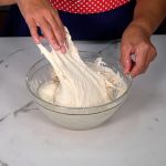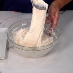 4 Pasado el tiempo del primer reposo amasamos con la cuchara cogiendo masa del borde y llevándola al centro levantando la cuchara para estirar la masa (Foto 8), lo haremos durante unos 5 minutos, después tapamos el recipiente y dejamos fermentar de 45 minutos a 1 hora a temperatura ambiente.