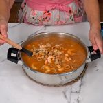 7. Cubrimos con caldo o fumet de pescado muy caliente, esperamos a que comience a hervir y seguido tapamos la olla, dependiendo del modelo de olla exprés que tengamos necesitara más o menos tiempo de 10 a 20 minutos y si es olla convencional tardaran en estar listos al menos 50 minutos o hasta que estén tiernos.