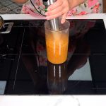 Incorporamos los tomates y cocinamos hasta que pierda el agua, seguido añadimos el pimentón y removemos rápidamente, apagamos el fuego y vertemos el sofrito en el vaso de la túrmix y trituramos hasta que sea una pasta.