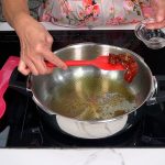 5. Ponemos en la olla exprés una cucharada de aceite a calentar a fuego medio y seguido incorporamos la ñora, la cocinamos hasta que este un poco dorada o durante un par de minutos, la retiramos y reservamos.