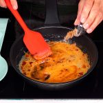 Picamos menudo unas hojas de hierbabuena y la reservamos para más adelante, en una sartén a fuego medio derretimos la mantequilla y la cocinamos un par de minutos hasta que se tueste ligeramente, seguido añadimos una cucharadita de pimentón dulce y unas hojuelas de chile o algún picante que tengamos en casa, mezclamos rápidamente y vertemos en un recipiente aparte.