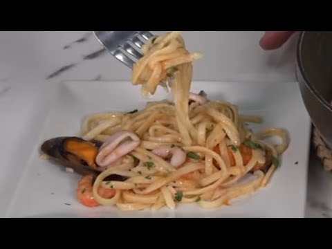 PASTA AL FRUTTI DI MARE, RECETA TRADICIONAL ITALIANA ¡FÁCIL Y DELICIOSA! Esta receta de pasta además de estar riquísima se hace de manera fácil y rápida, en poco más del tiempo que se tarda en cocer la pasta se prepara la salsa, esta receta se puede hacer con la pasta que más te guste sea pasta larga como la que yo he utilizado o pasta corta tipo macarrones, este plato es ideal para servirlo un día de fiesta, pero cualquier día de la semana es una opción estupenda porque con el marisco congelado también esta deliciosa y resulta a muy buen precio.