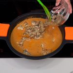 Preparación de la salsa para el POLLO EN SALSA CREMOSA DE TOMATE Y CHAMPIÑONES: