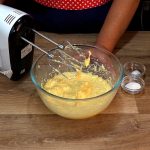 En un recipiente grande ponemos la mantequilla en pomada (que este fuera de la nevera al menos un par de horas), añadimos el azúcar y con varillas eléctricas batimos unos minutos hasta que el azúcar se vea casi disuelto, seguido añadimos los huevos, la esencia de vainilla y batimos hasta integrar.